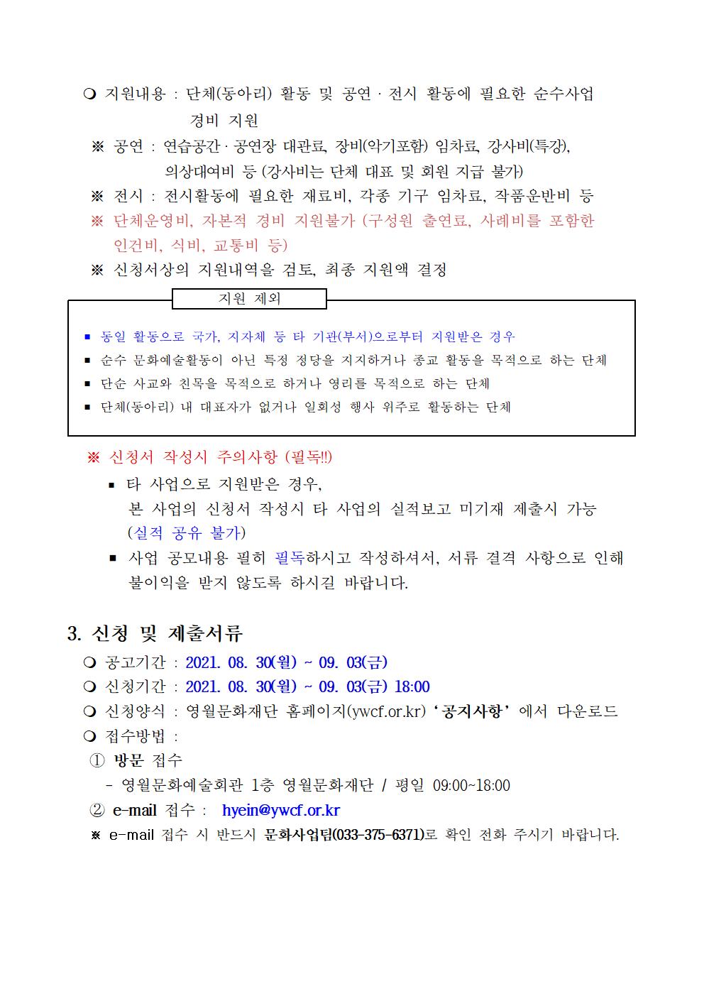 영월문화재단에서는 지역의 아마추어 생활예술 단체 및 동아리의 예술 활동을 지원하고 지역 생활문화예술 활성화를 위해