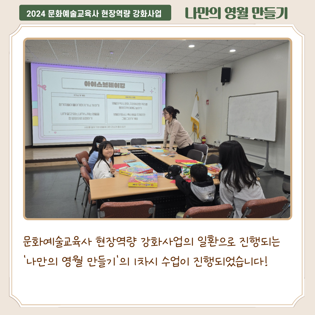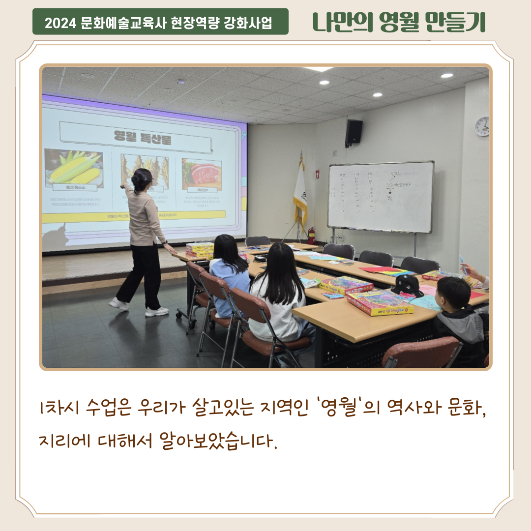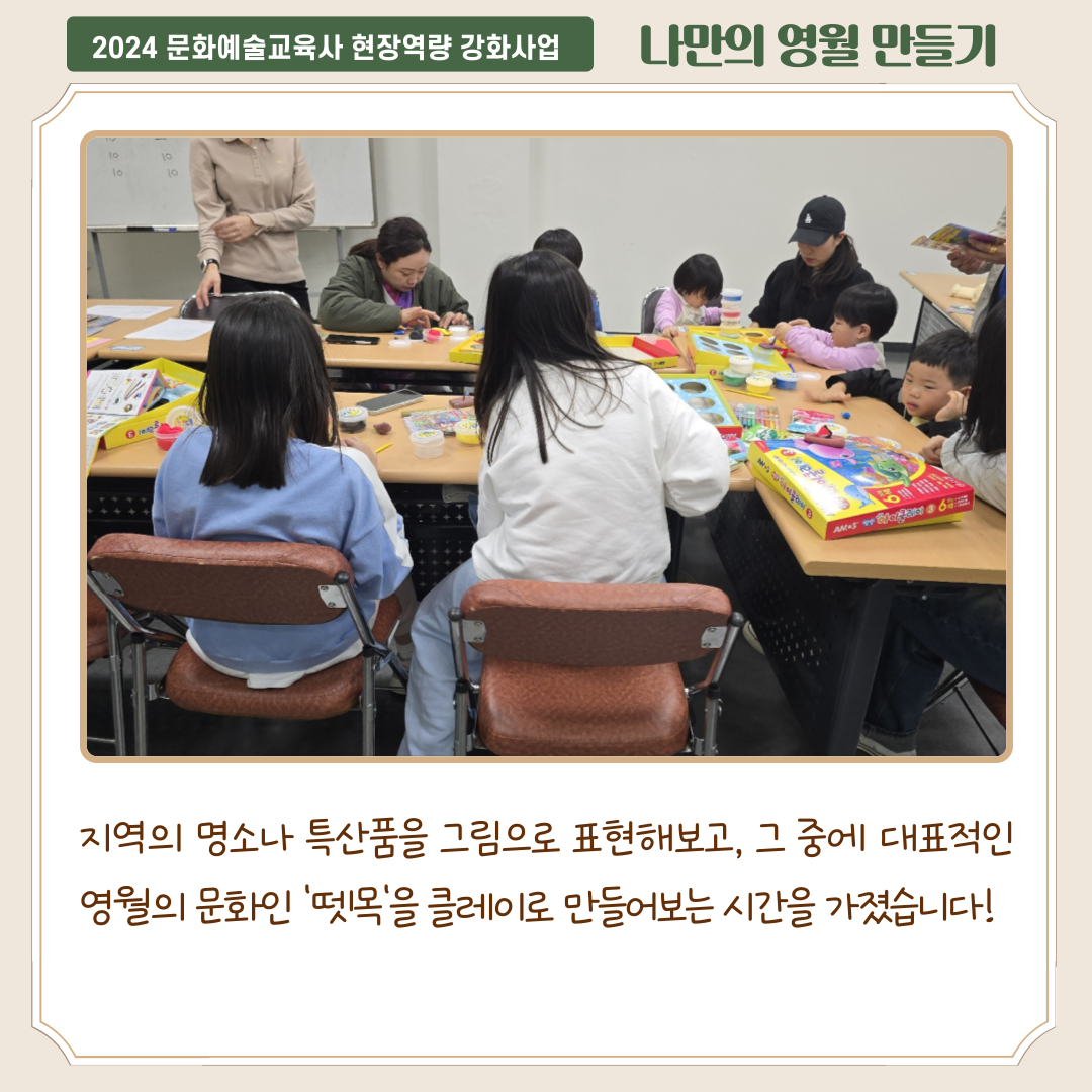 문화예술교육사 현장역량 강화사업의 일환으로 진행되는 '나만의 영월 만들기'의 1차시 수업이 진행되었습니다.