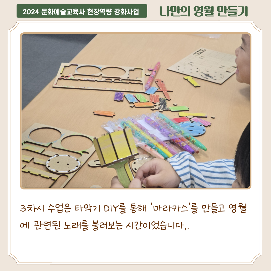 3차시 수업은 타악기 DIY를 통해 '마라카스'를 만들고 영월에 관련된 노래를 불러보는 시간 이었습니다.