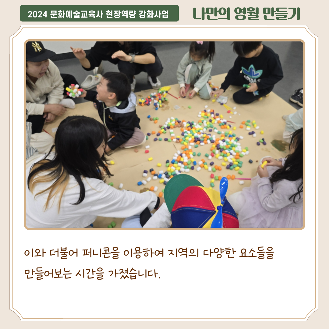 문화예술교육사 현장역량 강화사업의 일환으로 진행되는 '나만의 영월 만들기'의 3차시 수업이 진행되었습니다.