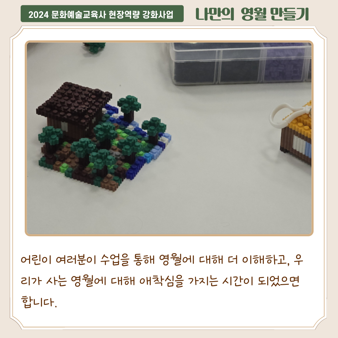 문화예술교육사 현장역량 강화사업의 일환으로 진행되는 '나만의 영월 만들기'의 4차시 수업이 진행되었습니다.