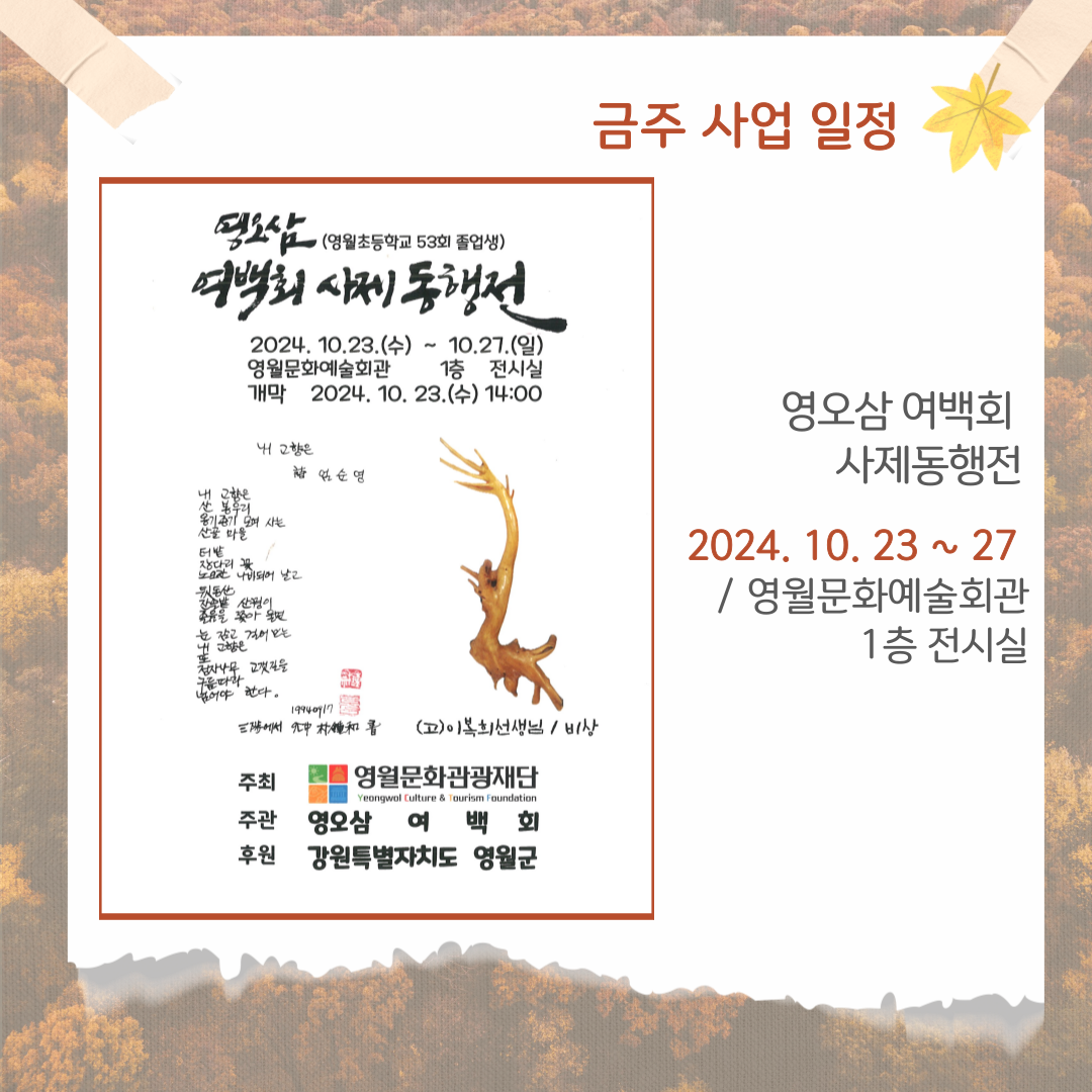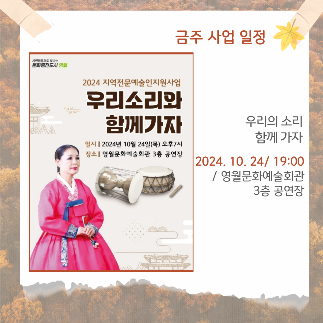 #2024지역예술인지원사업 #전문예술인 #생활예술인 #찾아가는문화활동 #전시 #공연 #여백회 #어라연소리예술단 #아트앤컬쳐스풍물도담 #영월효예술단 #클래식앙상블더문 #10월 #영월