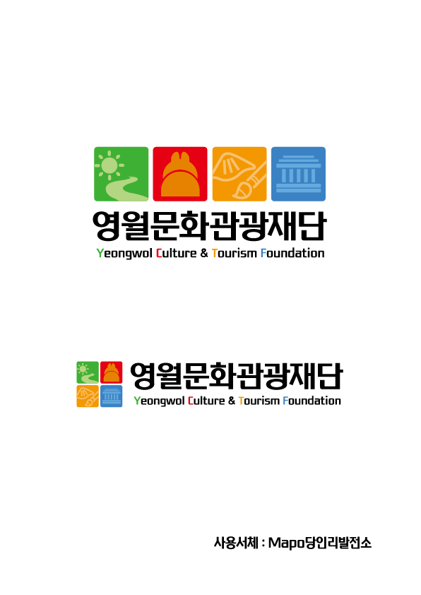 영월문화관광재단의 모든 시각 커뮤니케이션의 핵심이 되는 대표적 상징이므로 형태, 색상 등의 사용에 있어서 세심한 주의가 필요합니다.