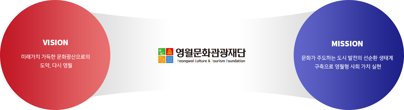 영월문화관광재단은 지역의 문화·관광 자원을 활용하여 문화예술의 창조적 기반을 조성하고, 지역 예술인과 시민들을 위한 문화 프로그램을 통해 삶의 질 향상과 지역경제 활성화에 기여합니다.