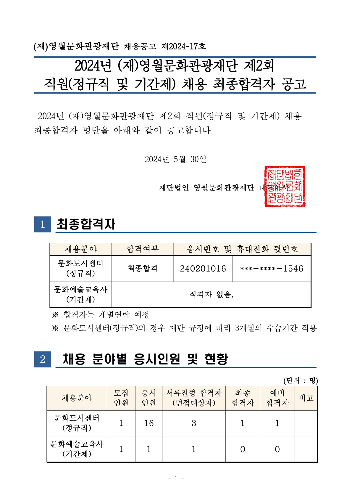 2024년 재영월문화관광재단 제2회정규직 및 기간제 직원 채용 최종합격자 공고_1.jpg