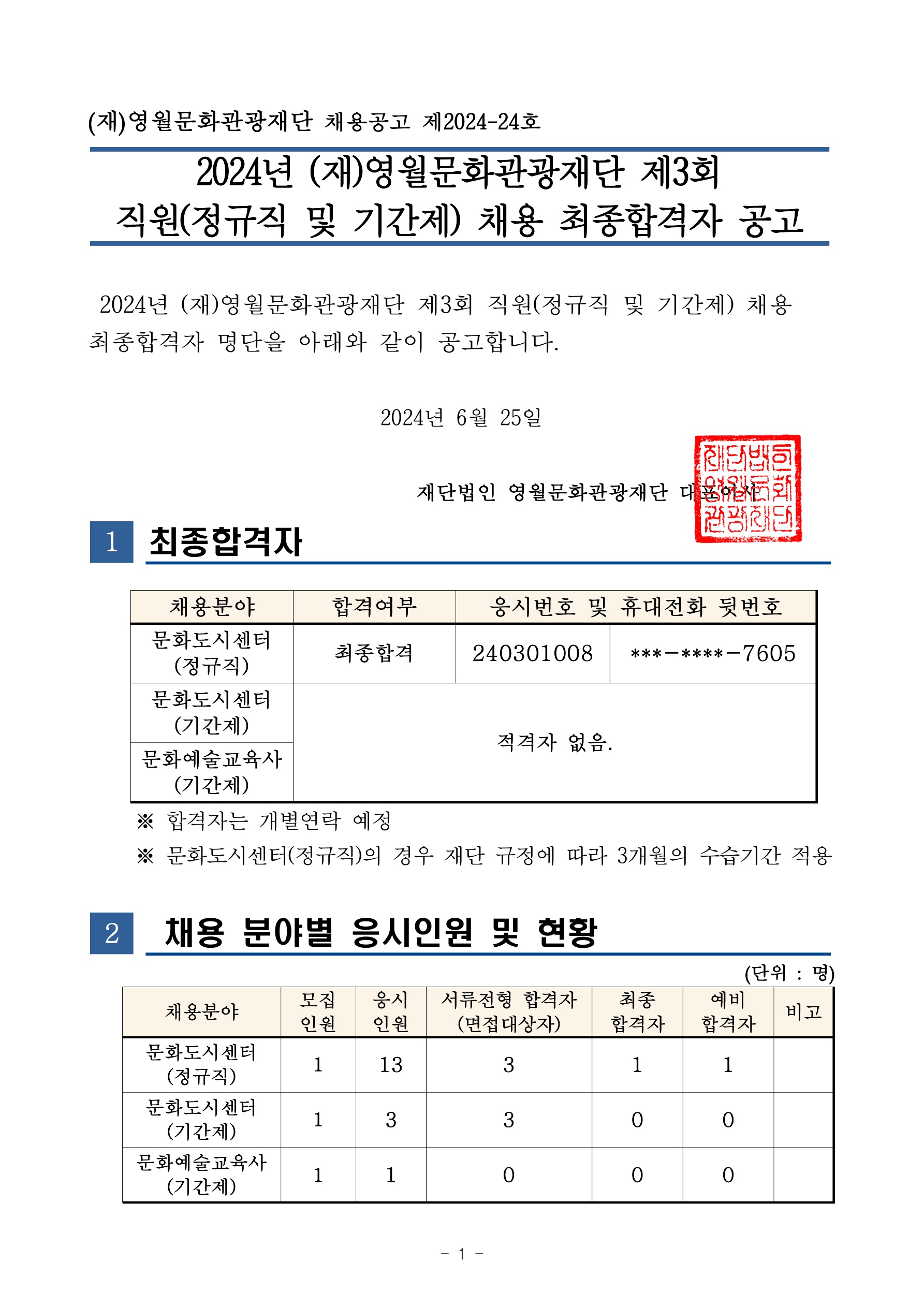 2024년 재영월문화관광재단 제3회정규직 및 기간제 직원 채용 최종합격자 공고_1.jpg