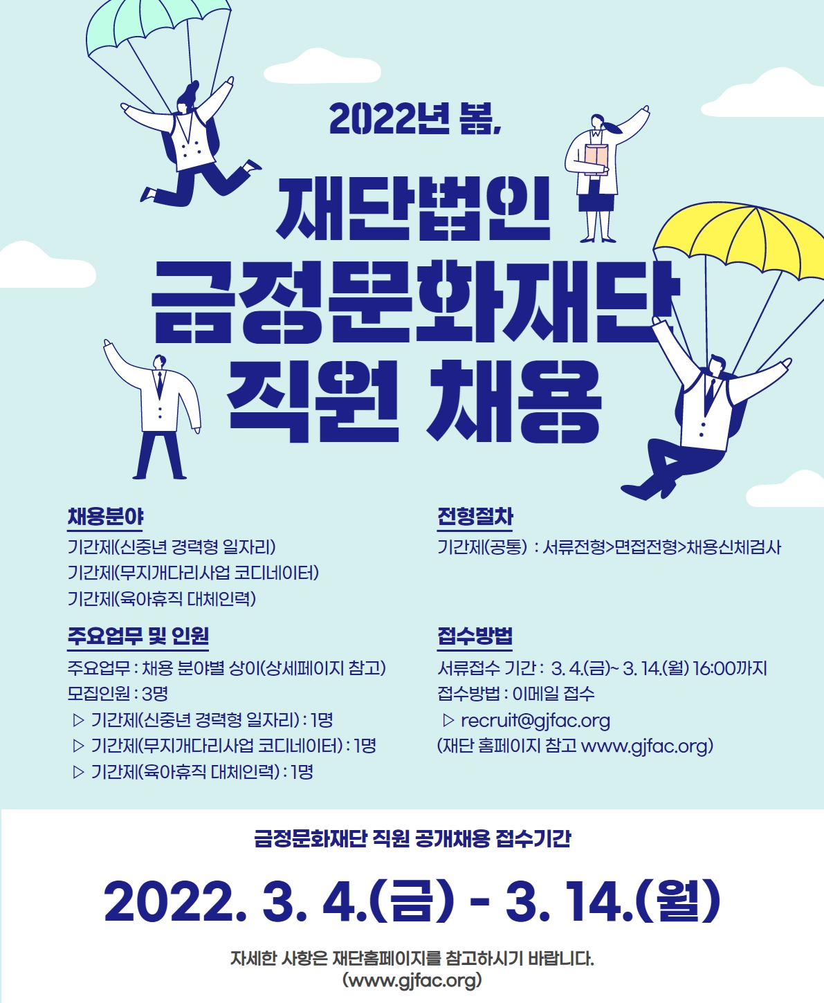 재)금정문화재단 2022년 제2차 직원채용 변경 공고