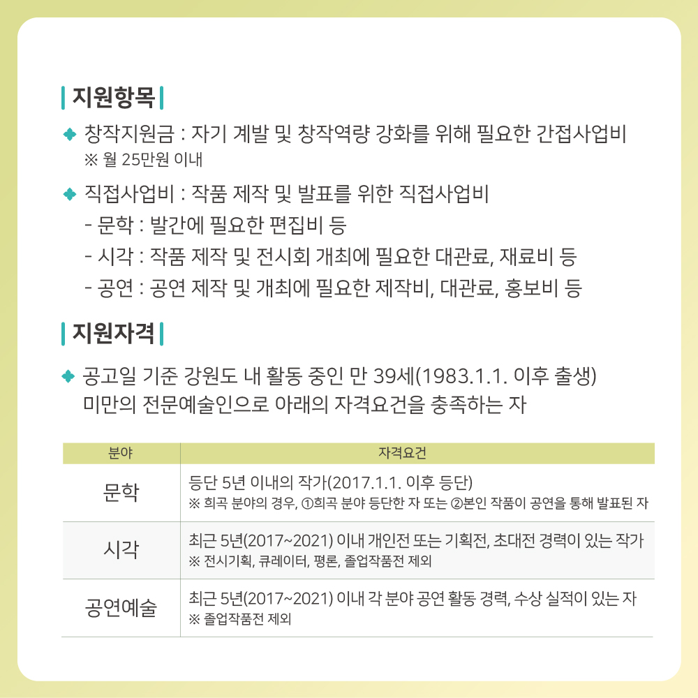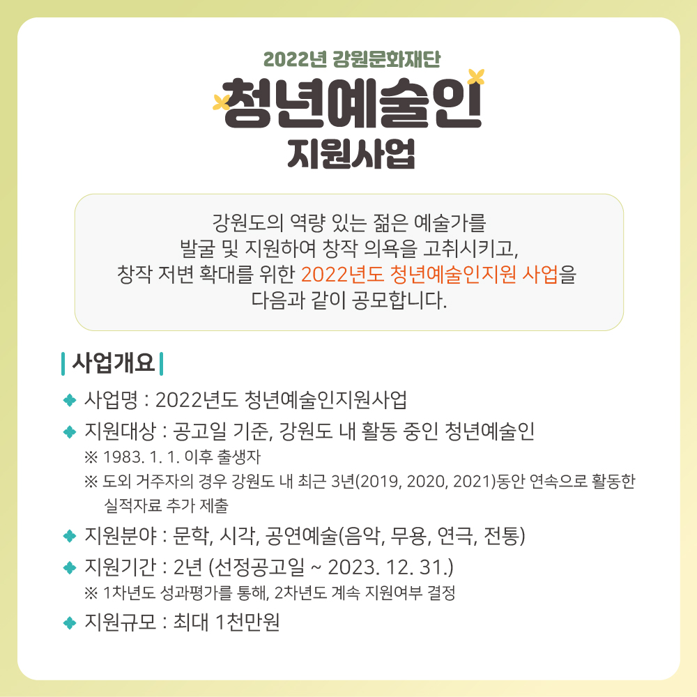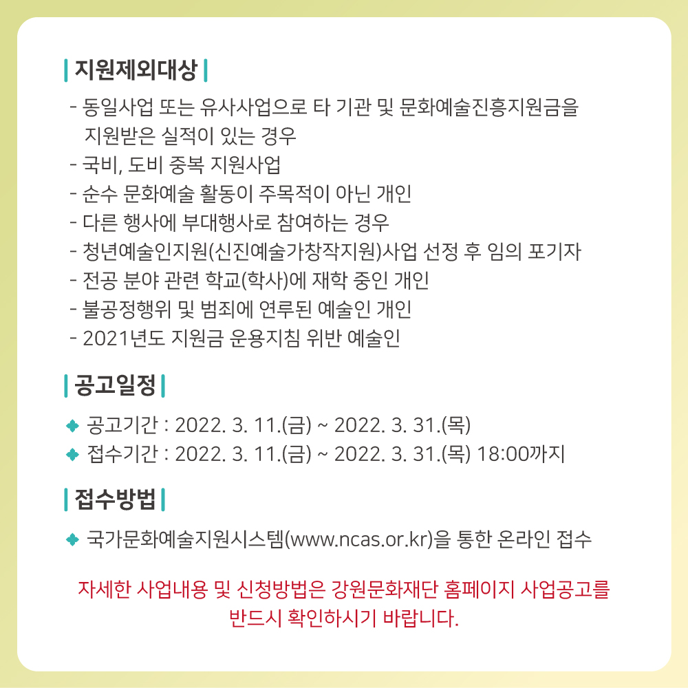 [강원문화재단] 2022년도 청년예술인지원사업 공고