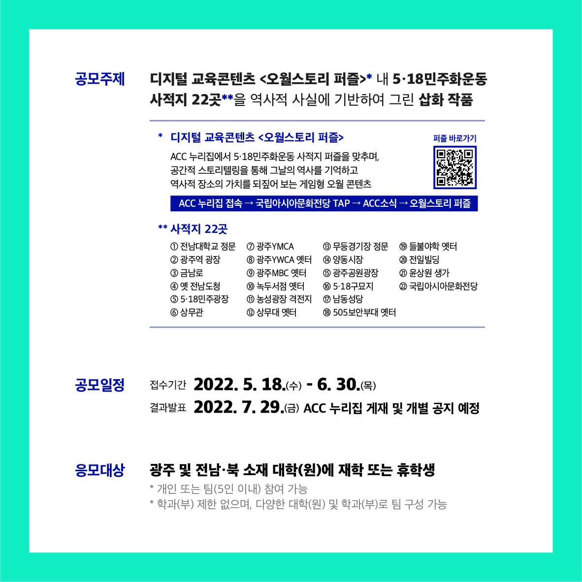 [국립아시아문화전당] <ACC 대학생 오월 사적지 삽화 공모전>
