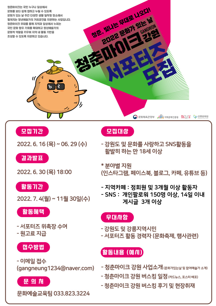 [강릉문화원] 2022 문화가 있는 날 청춘마이크 강원 서포터즈 모집