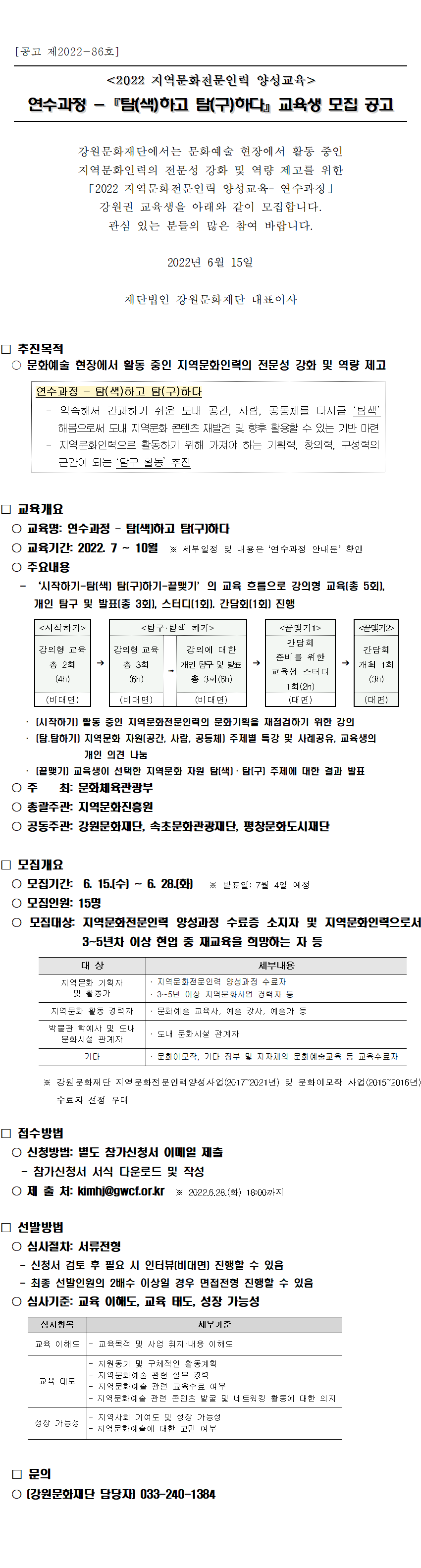 [강원문화재단] 2022 지역문화전문인력 양성 및 지원사업 연수과정 안내