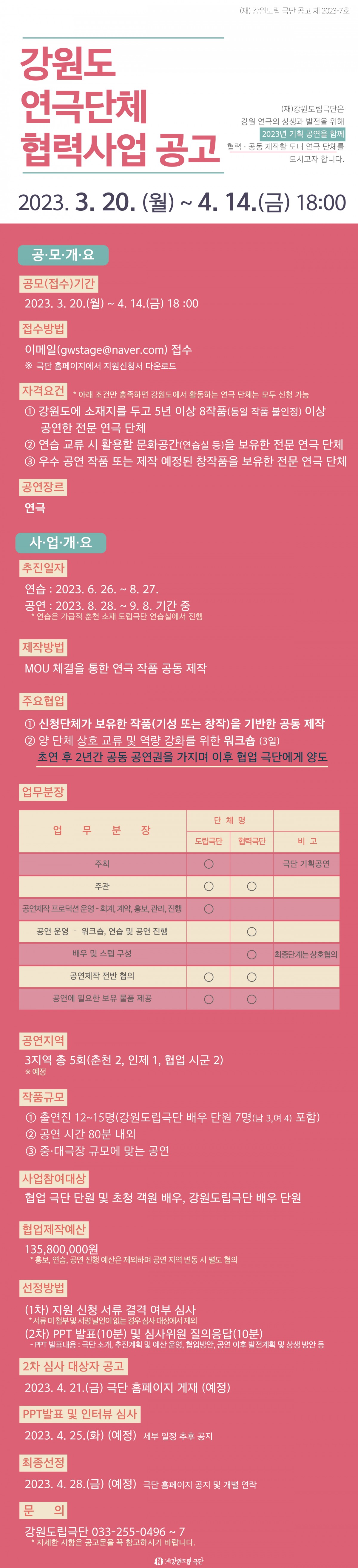 [강원도립극단] (재)강원도립극단 강원도 연극단체 협력사업 공고
