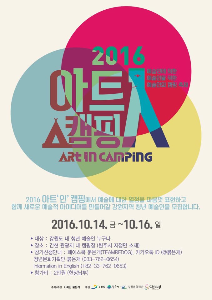 주요행사 : 텐트브리핑, 지원! 공작금, 예술가의 물건, 체험 예술의 현장, 캠핑 라디오,
