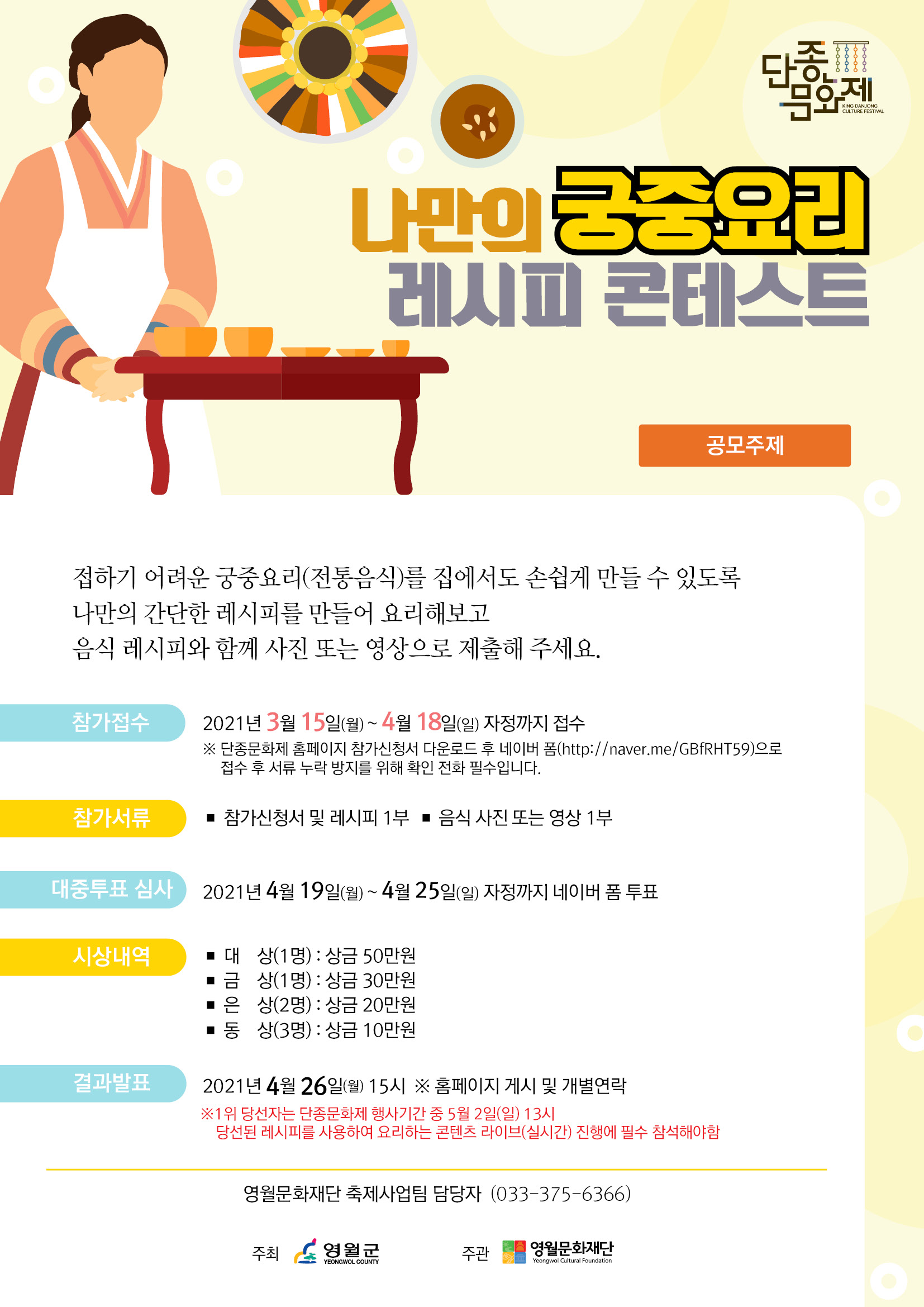 나만의 궁중요리 레시피 콘테스트 참가자 모집 공고