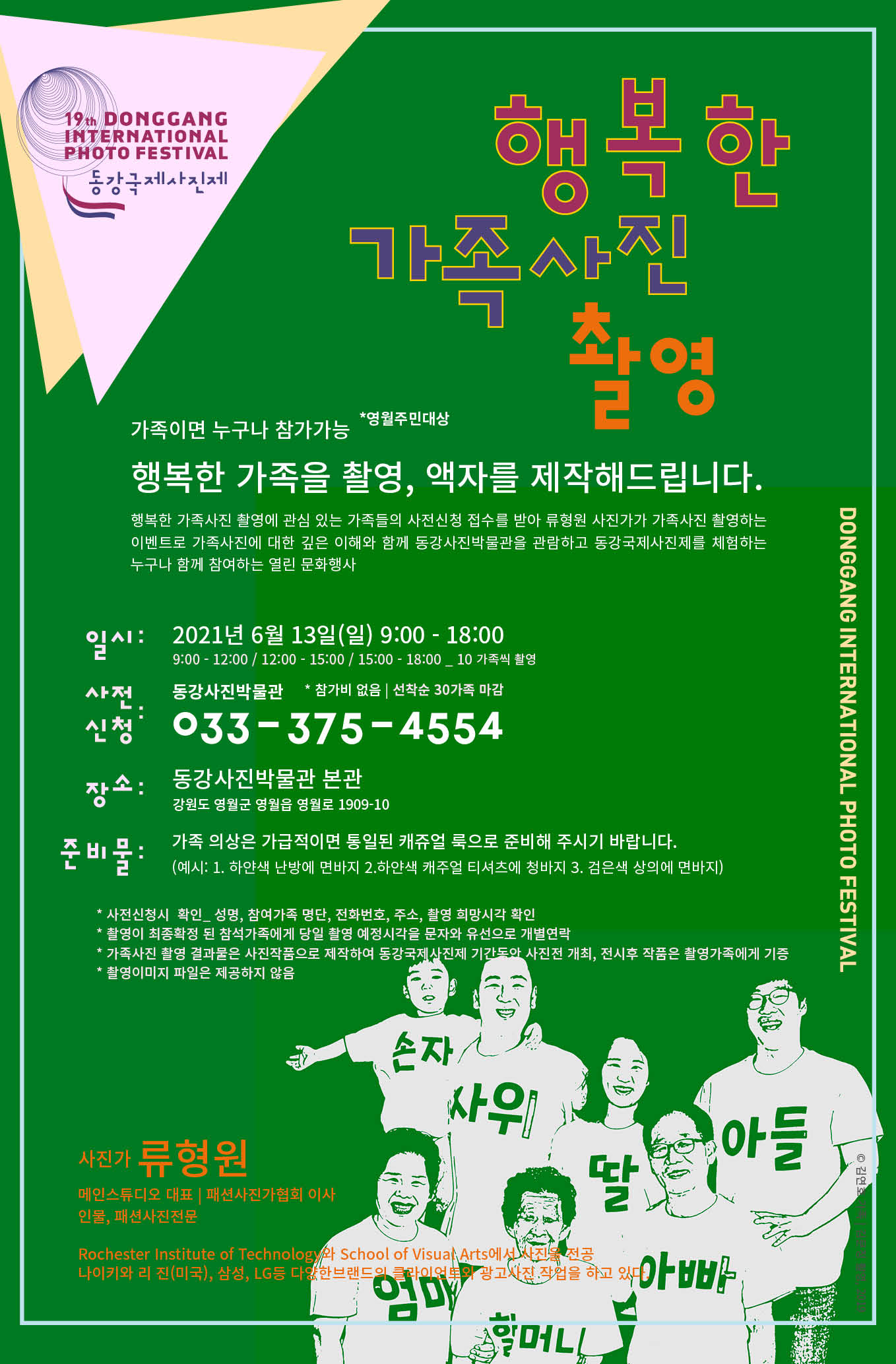 가족사진에 대한 깊은 이해와 함께 동강국제사진제에 영월주민들이 함께 참여하는 열린 문화행사로 진행하고자 합니다.
