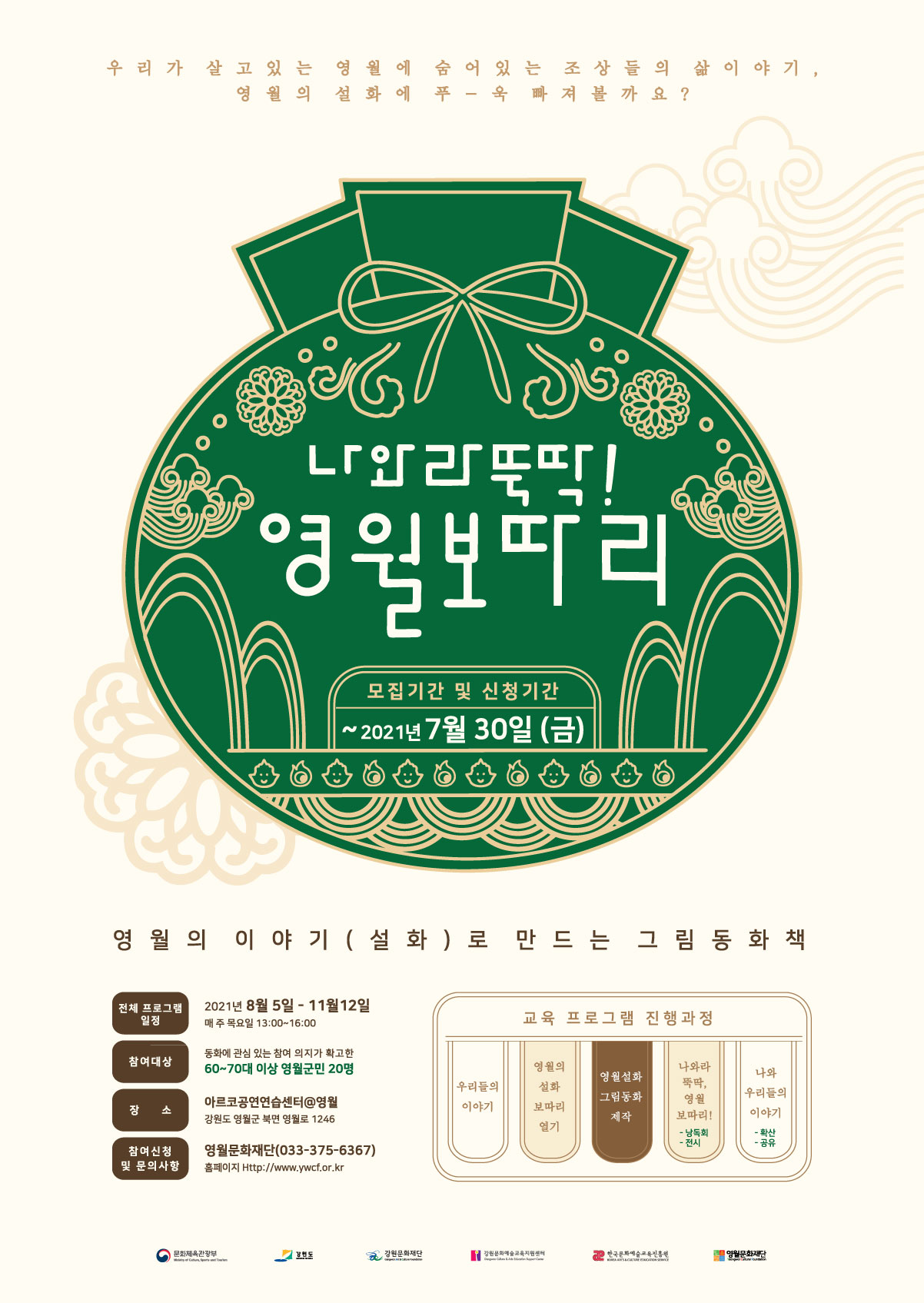 (재)영월문화재단은 문화예술교육사 현장역량 강화 지원사업으로 진행하는 영월 설화 그림동화책 제작 프로그램인 <나와라 뚝딱! 영월보따리> 참가자를 모집하고자 합니다.