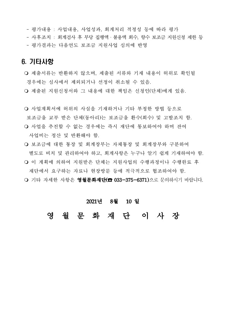 (재)영월문화재단 공고 제 2021 - 01 호