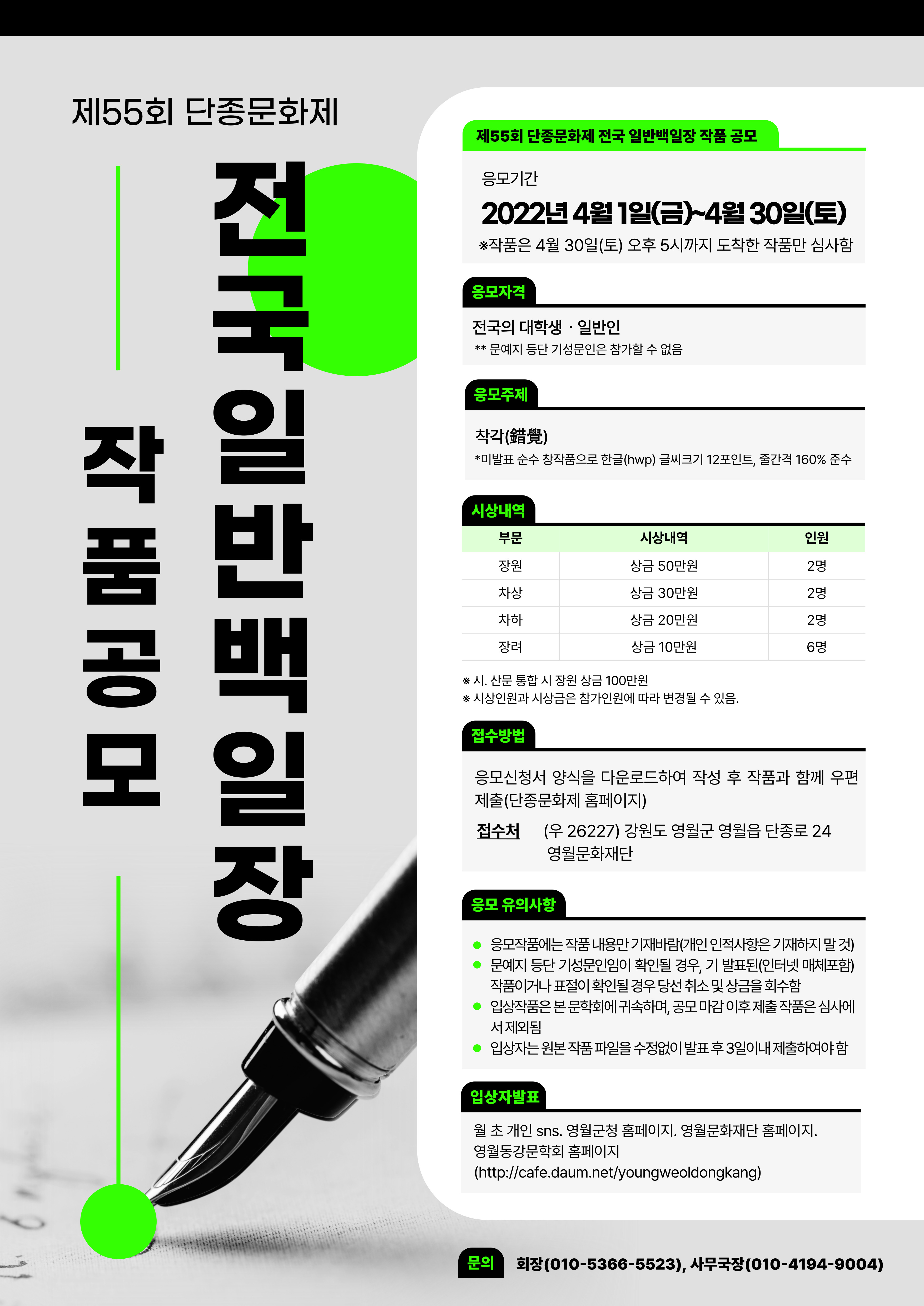 ㆍ장 원 2명(상장 및 부문별 시상금 50만원)