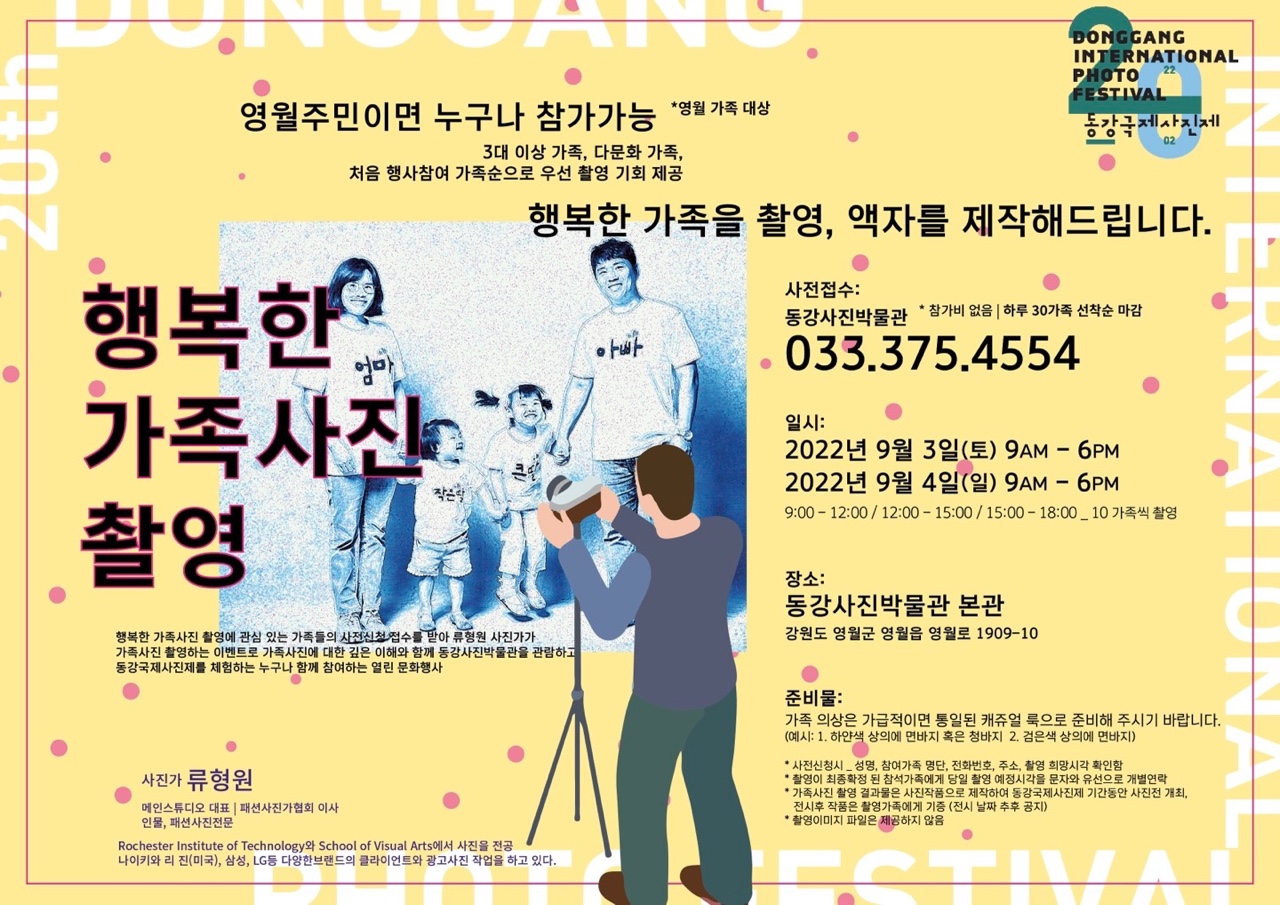 ※ 가족사진 촬영 결과물은 사진작품으로 제작하여 9월 하순 경 동강국제사진제 전시실에서 전시되며,