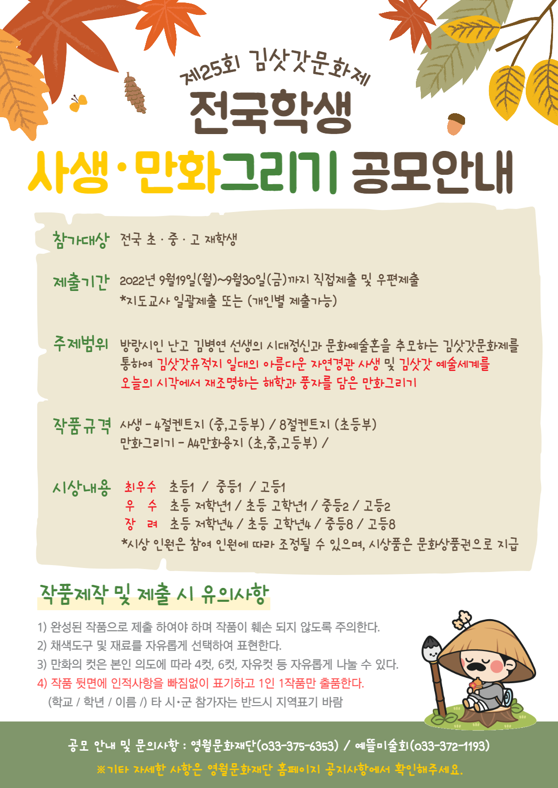 문화행사로 전국 학생 김삿갓 만화그리기·사생대회를 공모하오니 난고선생의