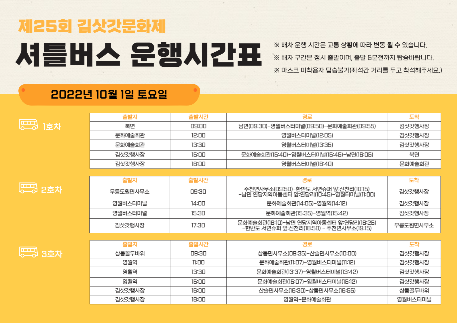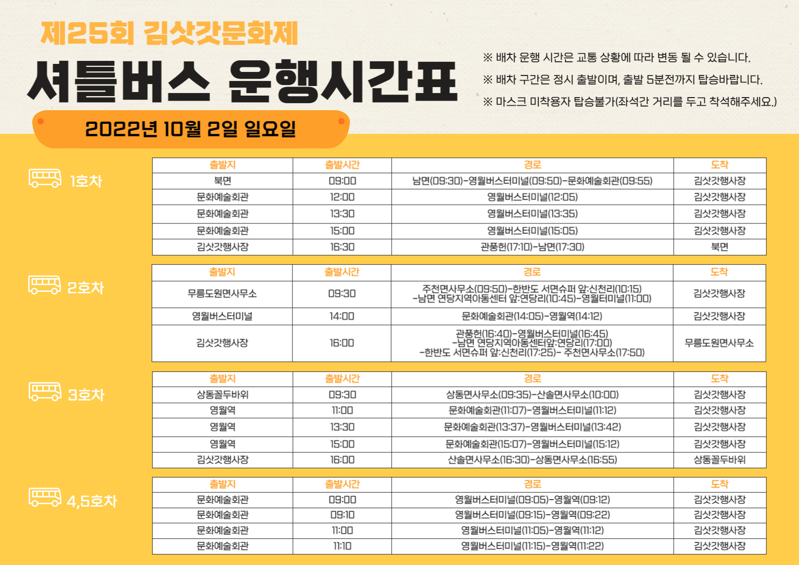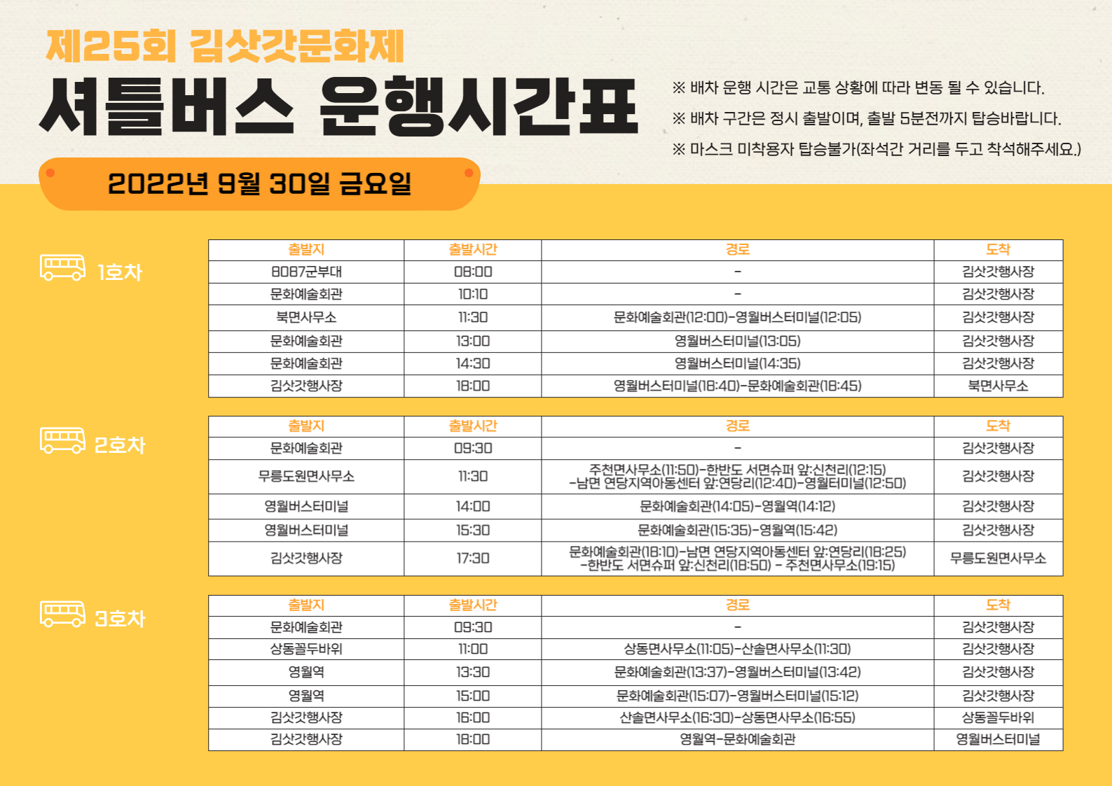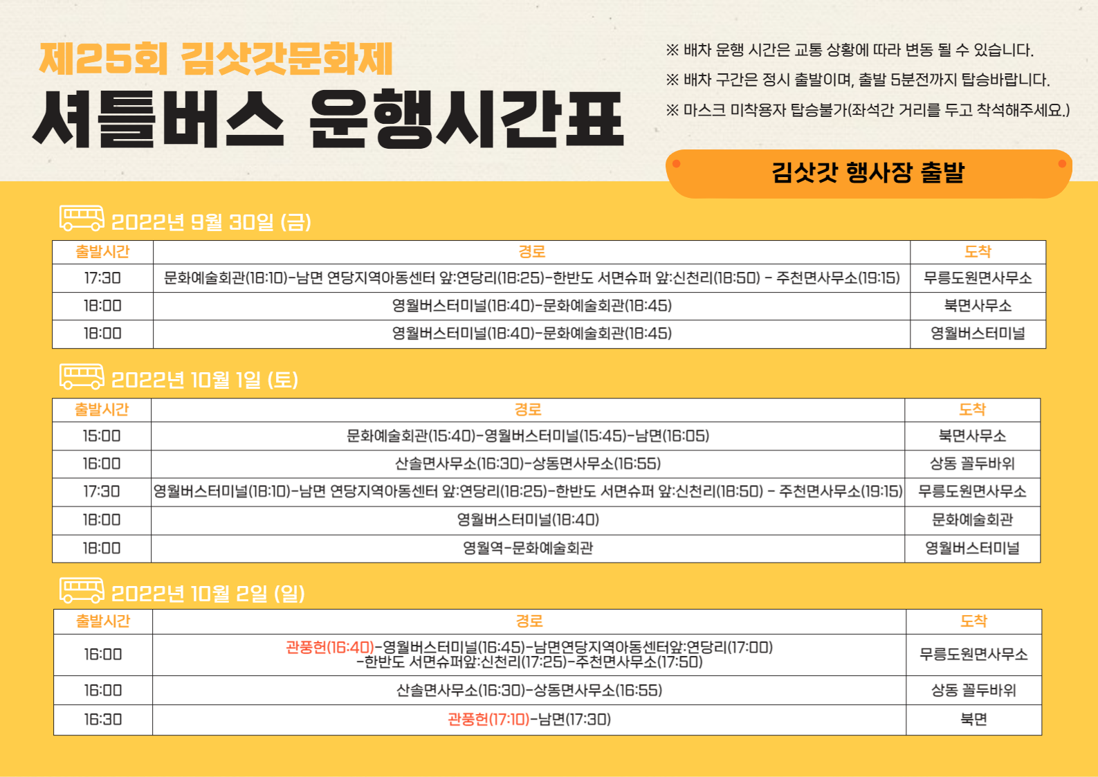 [제25회 김삿갓문화제] 셔틀버스 운행시간표