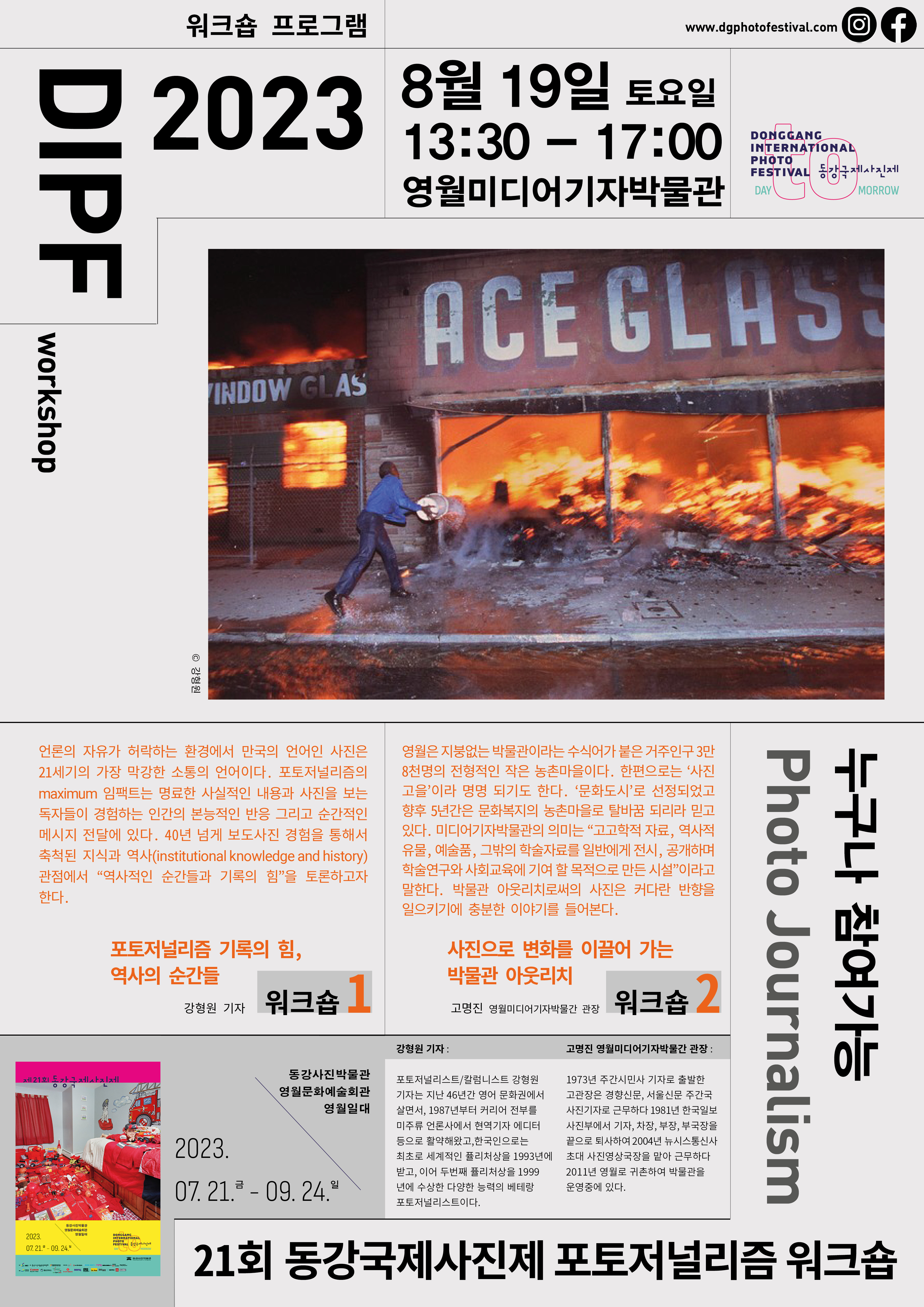 2023년 8월 19일(토) 제21회 동강국제사진제포토저널리즘 워크숍 개최 알림