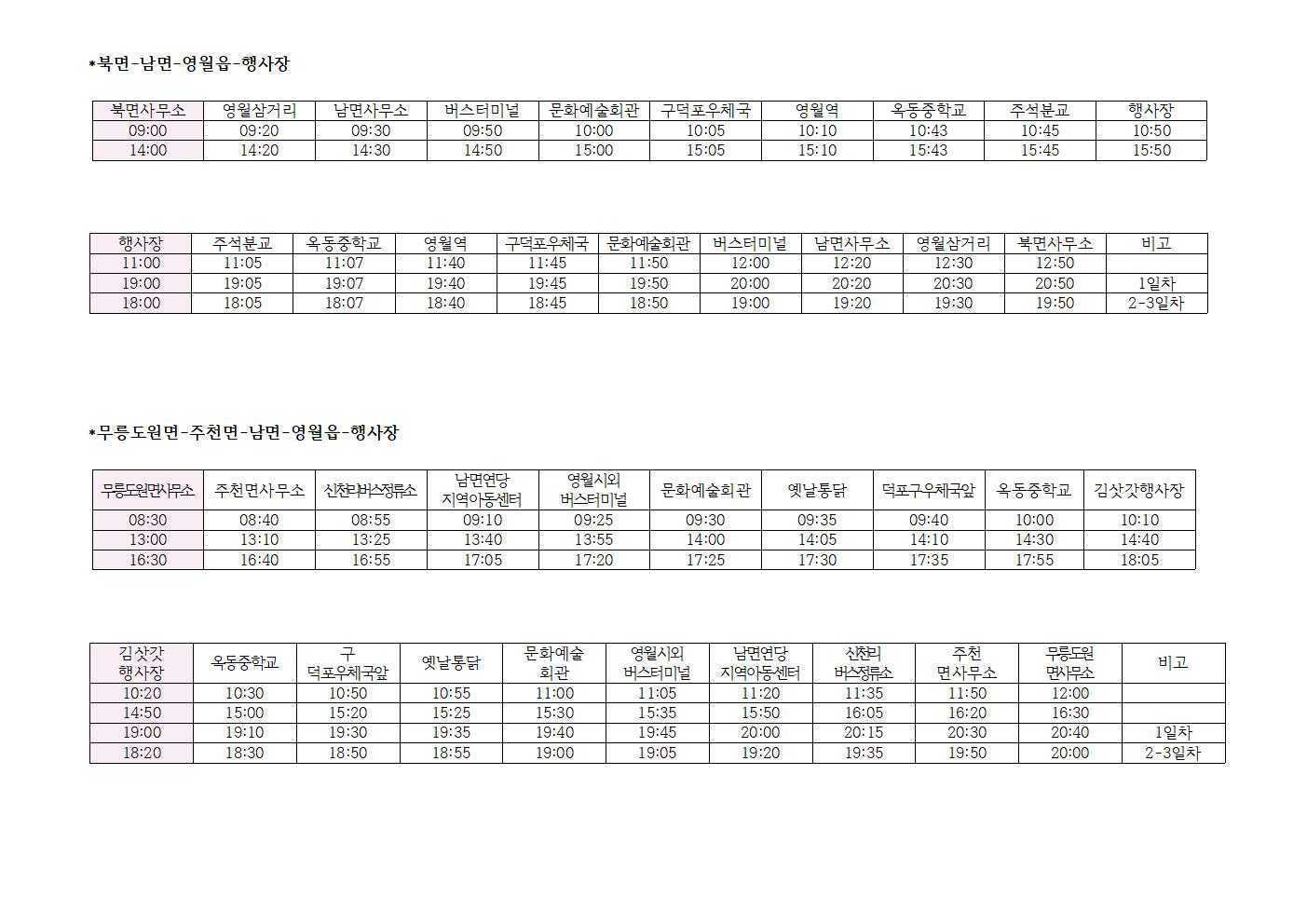 [제26회 김삿갓문화제] 셔틀버스 운행시간 안내