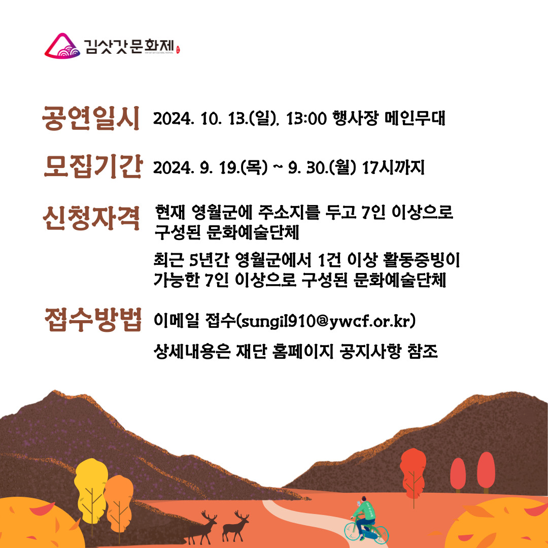 2024년 제27회 김삿갓문화제 『김삿갓 위 아트, WE ART』(지역예술인공연) 참가단체 모집 공고