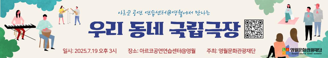 2025년 아르코공연연습센터@영월 특별 기획 프로그램 「우리동네 국립극장」의 첫 번째 에피소드 “소소 음악회” 참여가족을 모집합니다.