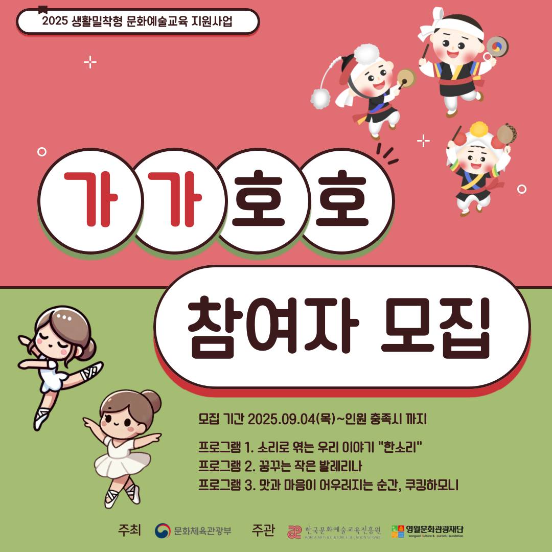 ❍ 사 업 명 : 2025 생활밀착형 문화예술교육 지원사업 ‘가가호호(家加好好)’